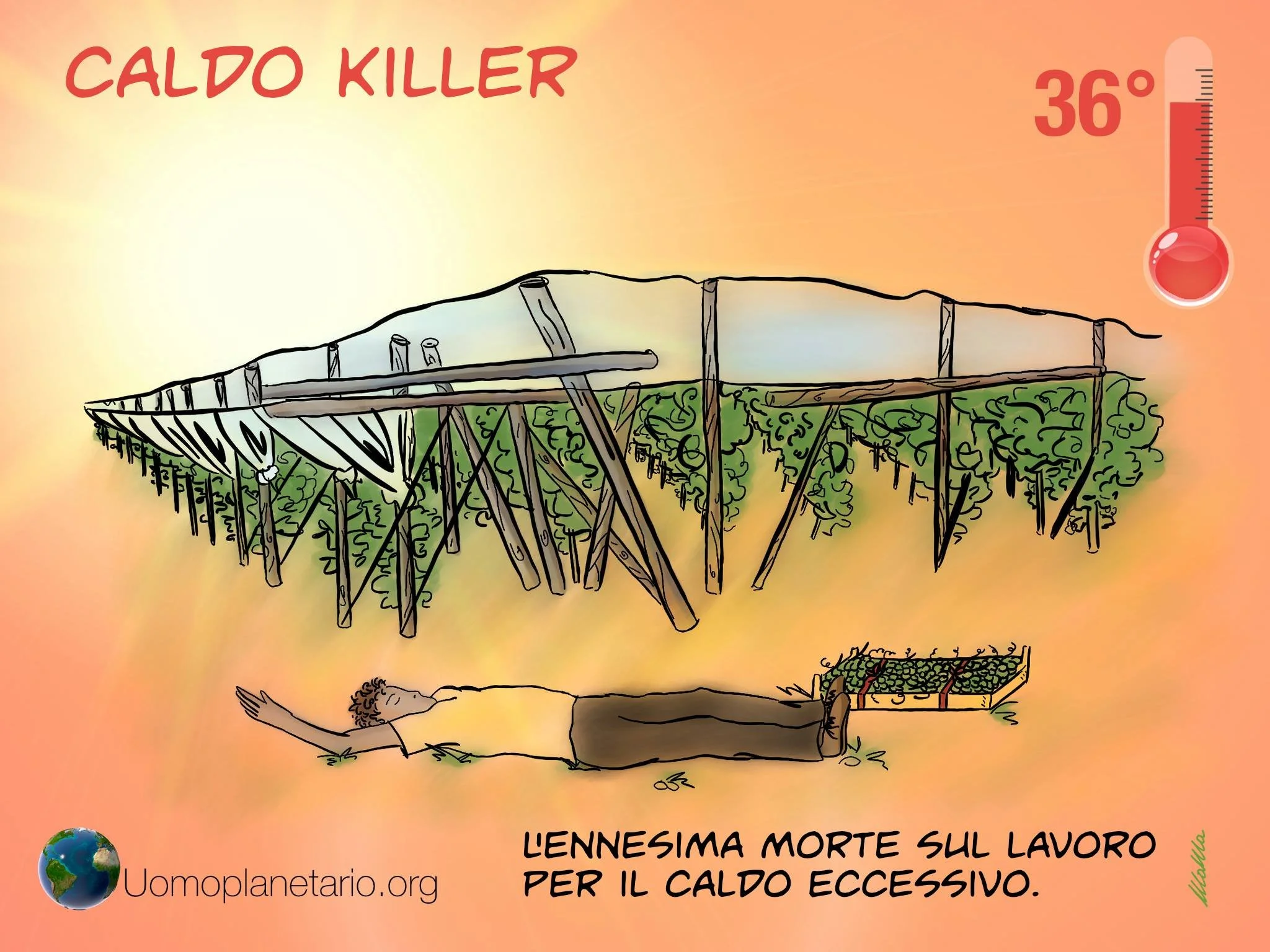 Caldo killer ImmigrazioneAgricolturaVignetta 6 ago Scritto da Matteo Della Torre L’ennesima morte sul lavoro per il caldo eccessivo. agricolturasfruttamentocaldo killer Matteo Della Torre https://www.matteodellatorre.com