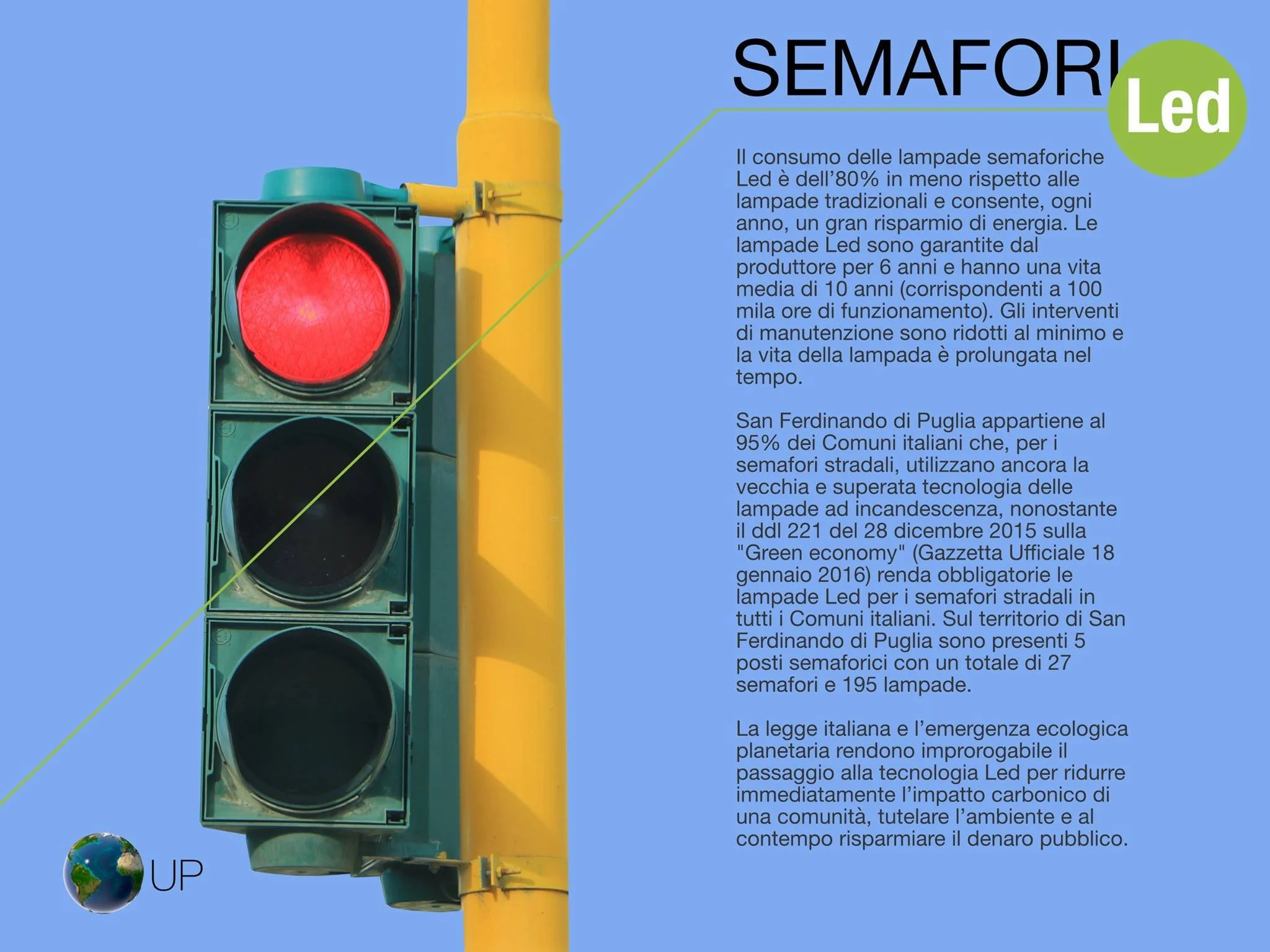 Il consumo delle lampade semaforiche Led è dell’80% in meno rispetto alle lampade tradizionali e consente, ogni anno, un gran risparmio di energia.
